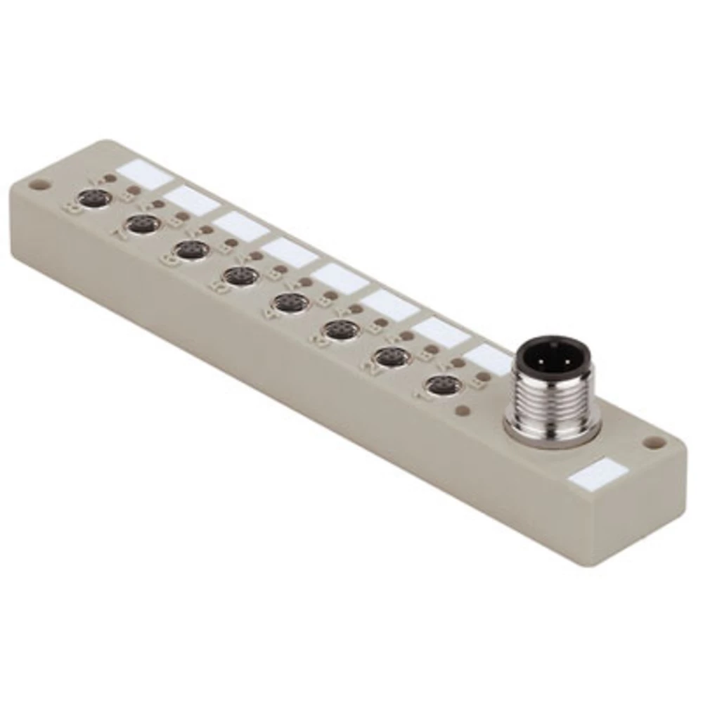Senzor / aktivatora pasivno distributer. M5, fiksna verzija kabela, 10 m, da. Osim iznimno malih dimenzija tih modula, težina je vrlo niska. Upravljanje ostaje ugodno pozitivno. M5 distributeri isporučuju se kao 4- i 8-struki moduli, svaki s M12, M16 ili fiksnim kabelskim utičnicama. Priključci su sami 3 ili 4-pinski. Označavanje: Svako utor je označen brojem utora. Svaku LED inicijatora treba dodijeliti točno simboli A i B. Nadalje, distributer i svaki utor imaju mogućnost označavanja.