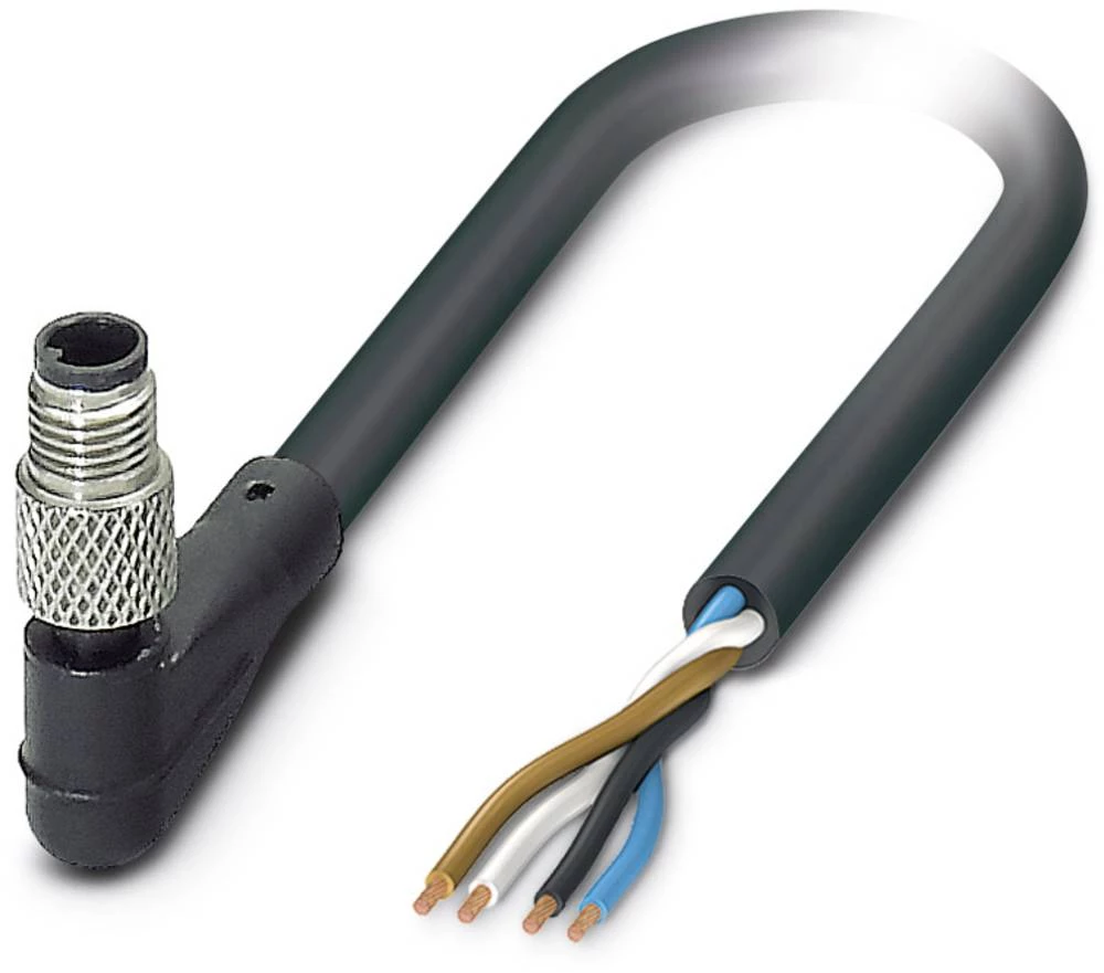 Sensor/Actuator cable, 4-position, PUR, Black RAL 9005, Plug angled M5, A-coded, on Free cable end, Cable length: 1.5 m