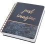 - Fantastično lijepa i trendovska spiralna bilježnica s plavo-crnim ispisom na džungli i sjajnim ispisom na foliji "samo zamislite", tvrda veza, žičani češalj i brzi džep na stražnjem poklopcu