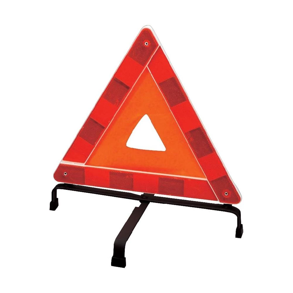 Sigurnosni trokut u plastičnom koferu s postoljem za postavljanje s 4 točke, službeno testiran prema smjernicama EZ. Obavezno za automobile, ATV motocikle, quad motocikle, tricikle, motore s bočnom