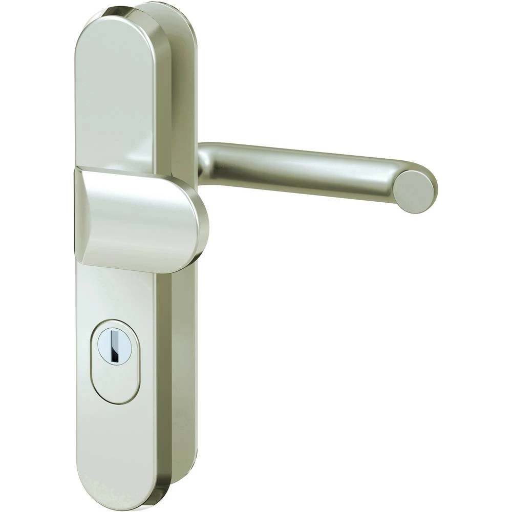 ES1 VMS - ZA 92/10 mm F2 sigurnosna armatura od punog materijala, vidljiva iznutra, izmjenjivi set (gumb kutni, poluga U-oblik), dugačka ploča okrugla, debljina ploče 15 mm, debljina vrata 38-42 mm, izbočina cilindra 10-17 mm, testirano prema DIN 18257, RAL-RG 607/6 test br. 3-5 / 16, 3V65