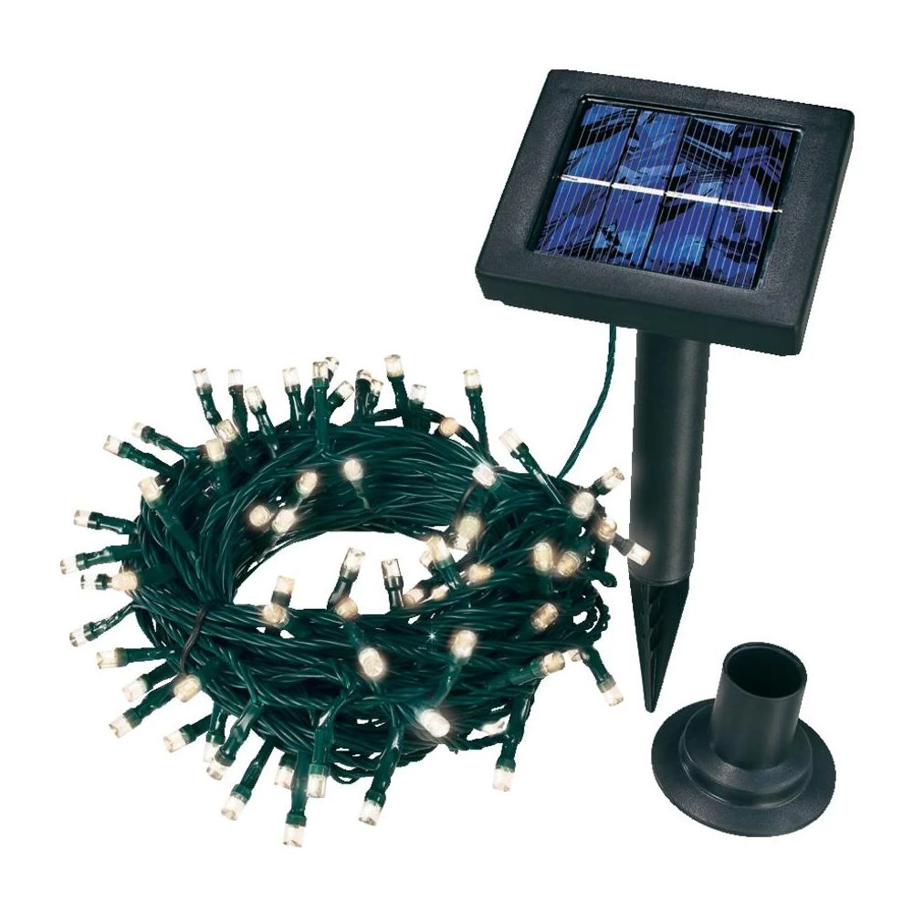 prekidača birate trajno ili treperavo svjetlo lanca. Sunce preko dana puni ugrađeni akumulator i rasvjeta se navečer automatski uključuje. Lanac je dostupan u toploj bijeloj boji ili u bojama