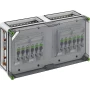 Kućište rastavljača prekidača s osiguračem za NH, industrijska kvaliteta, 4 x NH 00 rastavljači prekidača s osiguračima za montažu na sabirnicu, stezni priključak 1,5-50 m², univerzalni izlaz, 5-polna sabirnica, N terminali 4-35 m², PE terminali 4- 35qmm , 4 x konektori kućišta (GGV), na sustavu sabirnica 630 A, s prozirnim poklopcem