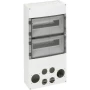 Razdjelnik utičnica, prazan, za ugradnju na uređaje montirane na tračnice i utičnice SCHUKO (R), uključujući PE / N terminal, kao i adaptere i vijke za montažu utičnica, velika mehanička nosivost, neosjetljiv na temperaturu, moduli: max .28HP, prikladno za ugradnju: 4x SCHUKO (R) utičnica (sprijeda) 16A, 230V, 2x CEE utičnica (sprijeda) 16A / 32A, 400V