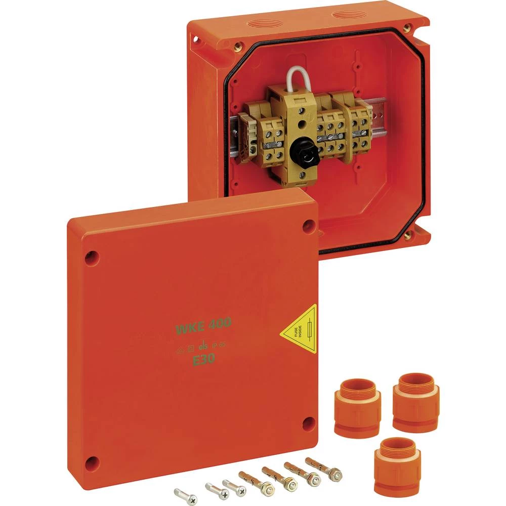 Razvodna i priključna kutija kabela, IP66, certificirana prema EN 61439-2, s integritetom električne funkcije E30 prema DIN 4102, dio 12 u prolazu, kućište i priključni blokovi izrađeni su od posebne halogene duroplastike, razvodna kutija sa stopljenim spojem, razvodna kutija 3-pinska, razvodna kutija 3-pinska, broj stezljivih vodiča po stupu 4 x 1,5-10 mm2, kapacitet stezanja po steznoj točki 1 x 1,5-10 mm2, držač osigurača D02 maks. 6A