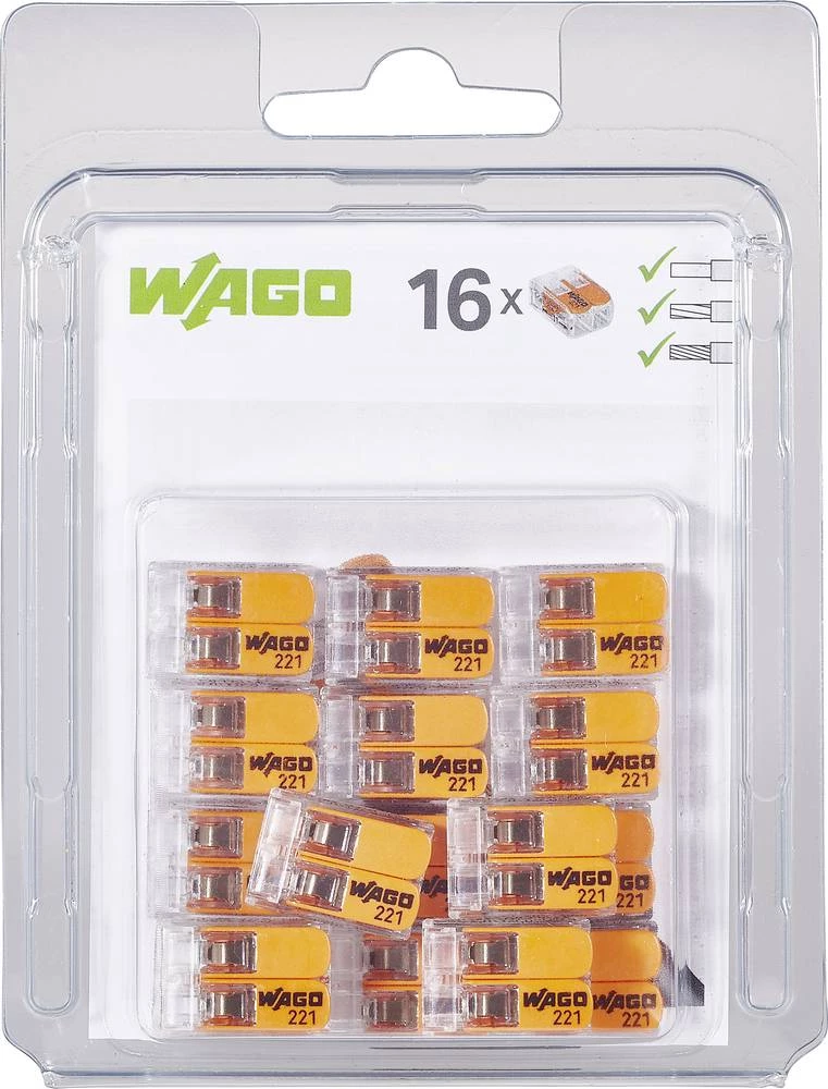 - Spojna stezaljka fleks: 0.14-4 mm² krut: 0.2-4 mm² Broj polova: 2 WAGO 221-412/996-016 16 ST Prozirna, Narančasta