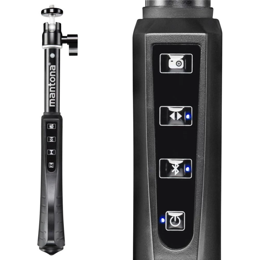 Ručni stativ iz mantone idealan je suputnik prilikom snimanja ili fotografiranja GoPro Heroom ili pametnim telefonom. Čvrsti aluminijski stativ može se postupno produžiti i brzo se i jednostavno zaključava. Sa svojom malom težinom može se savršeno koristiti za selfieje, a veći promjer nastavaka stativa također optimalno stabilizira video snimke.