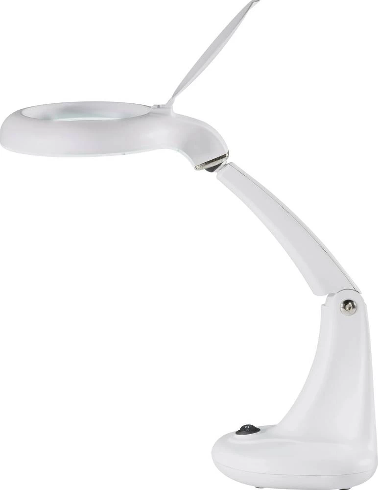 Kompaktna, ali snažna stolna svjetiljka s povećalom s prstenastim fluorescentnim cijevima za dnevno svjetlo, bez sjene. Snaga je 3 dioptrije, tu je i mali ugrađeni objektiv s 12 dioptrija, koji se može koristiti za povećanje ekstremno malih dijelova / fontova (npr. Čitanje tipa komponente ili slično). S poklopcem za leću. Podesivo na dva zgloba.