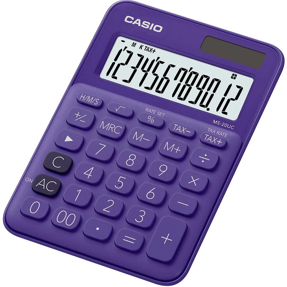 Stolni kalkulator Casio MS-20UC Ljubičasta Zaslon (broj mjesta): 12 solarno napajanje, baterijski pogon (Š x V x d) 105 x 23 x 1
