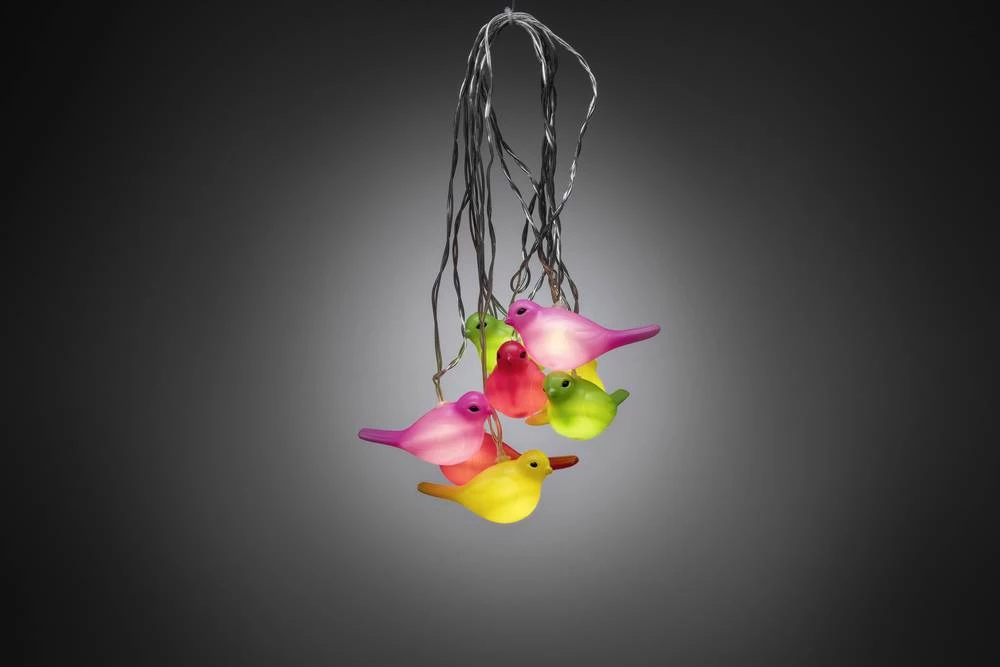 Radujte se izdvajanju ukrasa koji oduzima dah. Kvalitetne, filigranske, šarene ptice blistaju poput malih nakita u mraku i dočaravaju osmijeh u oku promatrača i osmijeh na licu. Bilo na svečanom stolu, u staklenoj posudi ili u posudi, ovaj ukrasni lanac od Konstsmidea privući će svu pažnju. Konstsmide se više od 40 godina specijalizirao za proizvodnju visokokvalitetnih svjetlosnih ukrasa za unutarnju i vanjsku upotrebu i od 1999. godine glavna je pokretačka snaga ekoloških, dugotrajnih i sigurnih LED rješenja.