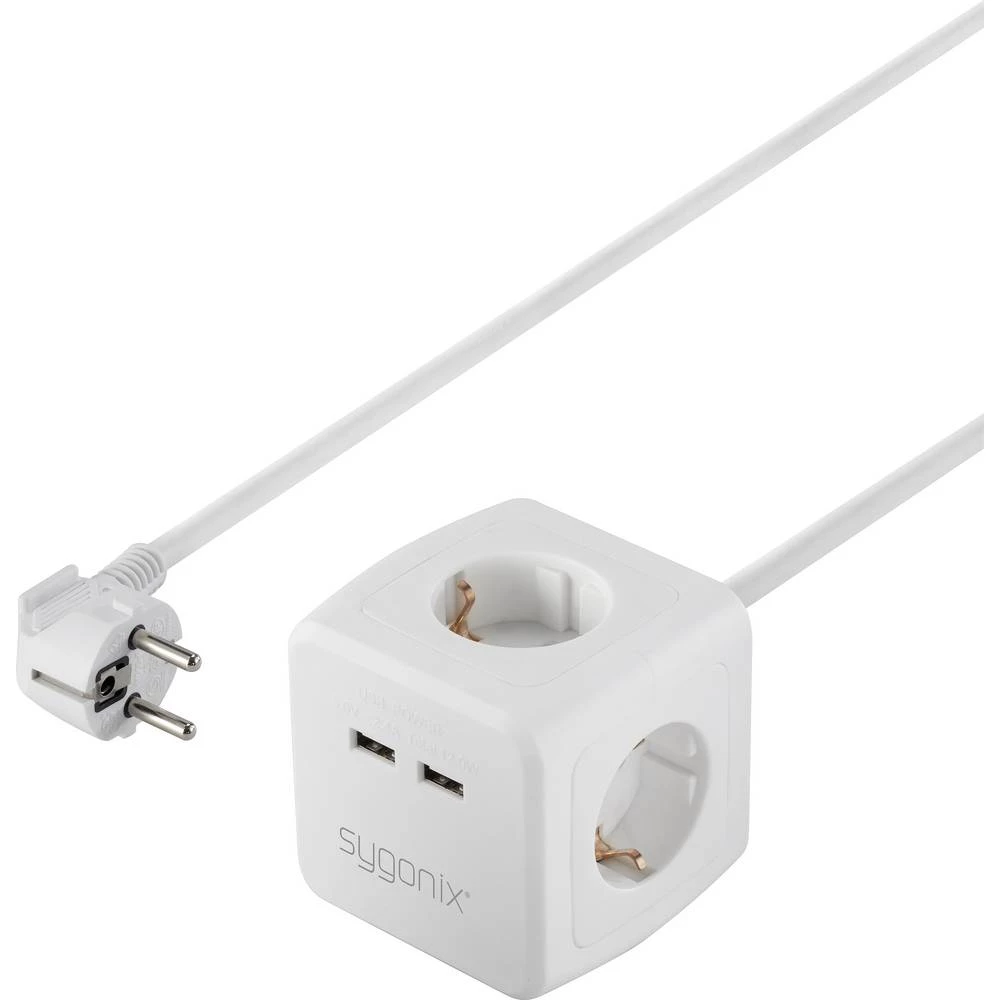 Sygonix razvodna kocka u bijeloj boji opremljena je s četiri zaštitne kontaktne utičnice i dva USB-A priključka za punjenje. Plavi LED indikator označava radi li uređaj. Sigurnost i praktičnost savršeno se kombiniraju u ovoj kocki za utičnice: Opremljena je povećanom zaštitom od kontakta i može se sigurno montirati na mjesto zahvaljujući vijačnoj bazi stola. Vijci su uključeni u isporuku.