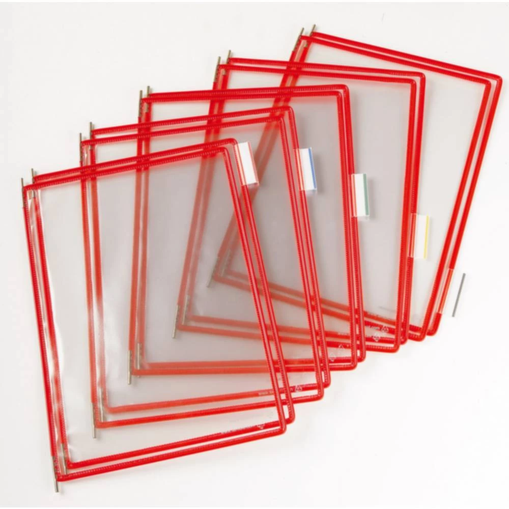 Ploča zaslona, A4 u portretnom formatu, okvir od čelične žice s plastičnom prevlakom u crvenoj boji, PVC zaslon, isporuka uključujući 5 kopči, svaka po 10 panela.
