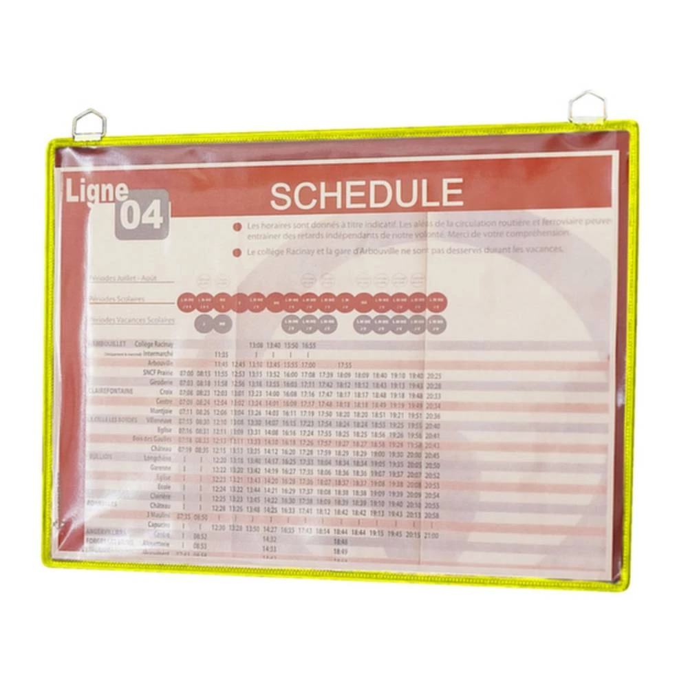 Displej, DIN A5 u pejzažnom formatu, okvir od čelične žice sa žutim plastičnim premazom, plastični displej, za zidnu montažu, okvir s metalnom ušicom.