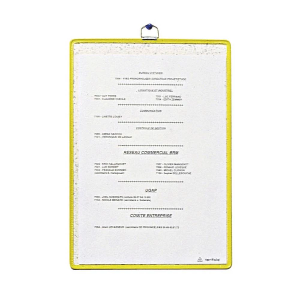 Displej, DIN A3 u portretnom formatu, okvir od čelične žice sa žutim plastičnim premazom, plastični displej, za zidnu montažu, okvir s metalnom ušicom.