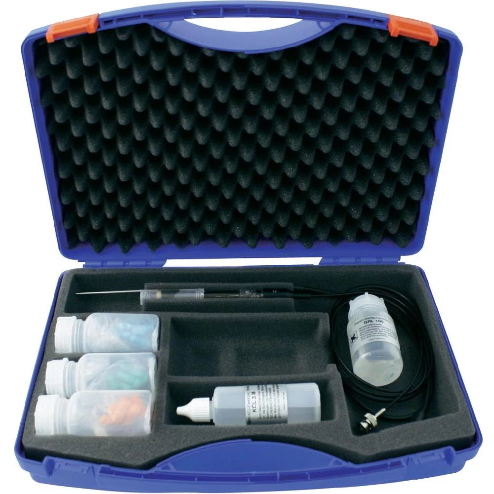 Praktični dodatak i radni set za ph / redox i mjernu temperaturu GMH 3530. Najčešće potrebni senzori i senzori uključeni su poput kalibracijskog skupa. Mjerni uređaj se također može staviti u kućište.