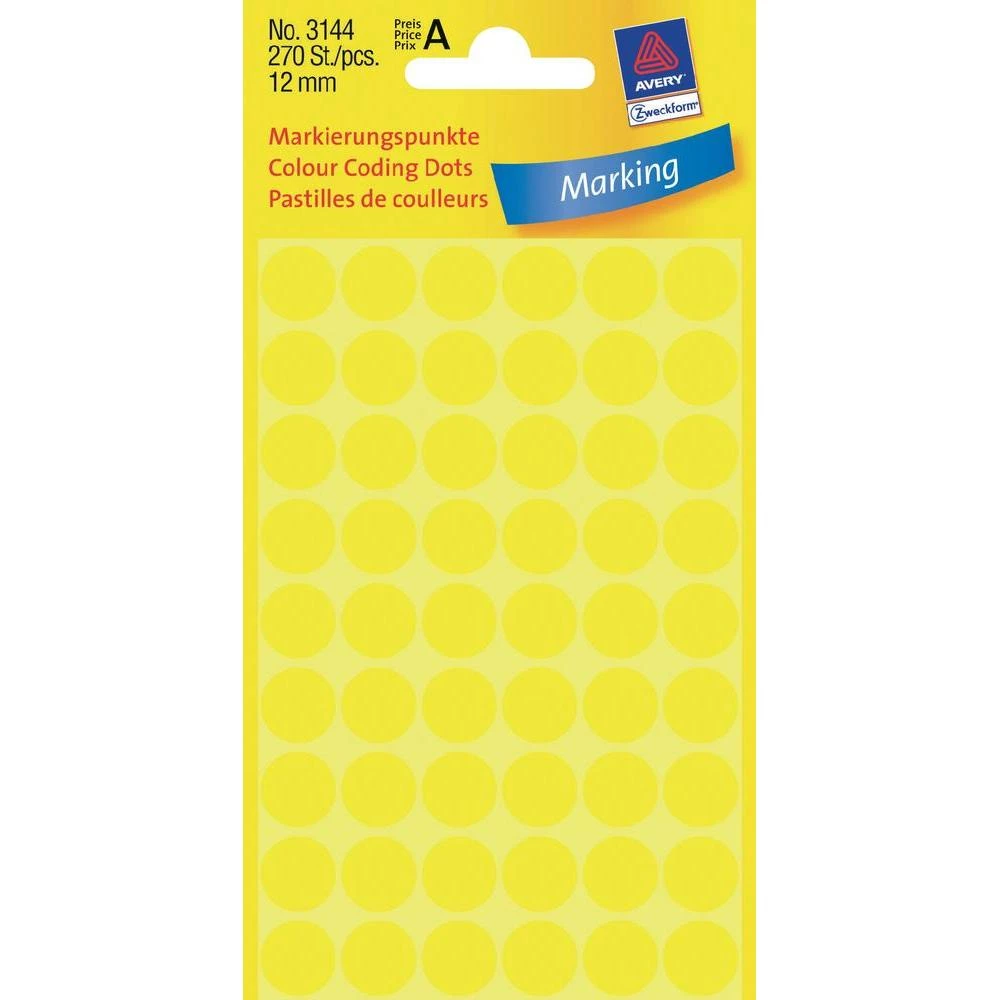 Točke za obilježavanje Avery Zweckform 3144, promjer 12 mm,žute boje, 270 komada Avery-Zweckform