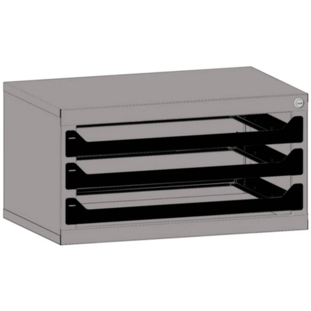 Toranj za odlaganje ormarića - bez asortimana - Kuglični teleskopski puni nastavci - Opremljen jednim mehanizmom za zaključavanje - Blokira se putem sigurnosne brave s 2 tipke Opseg opskrbe: - Uključujući Montažni materijal za zidnu montažu.