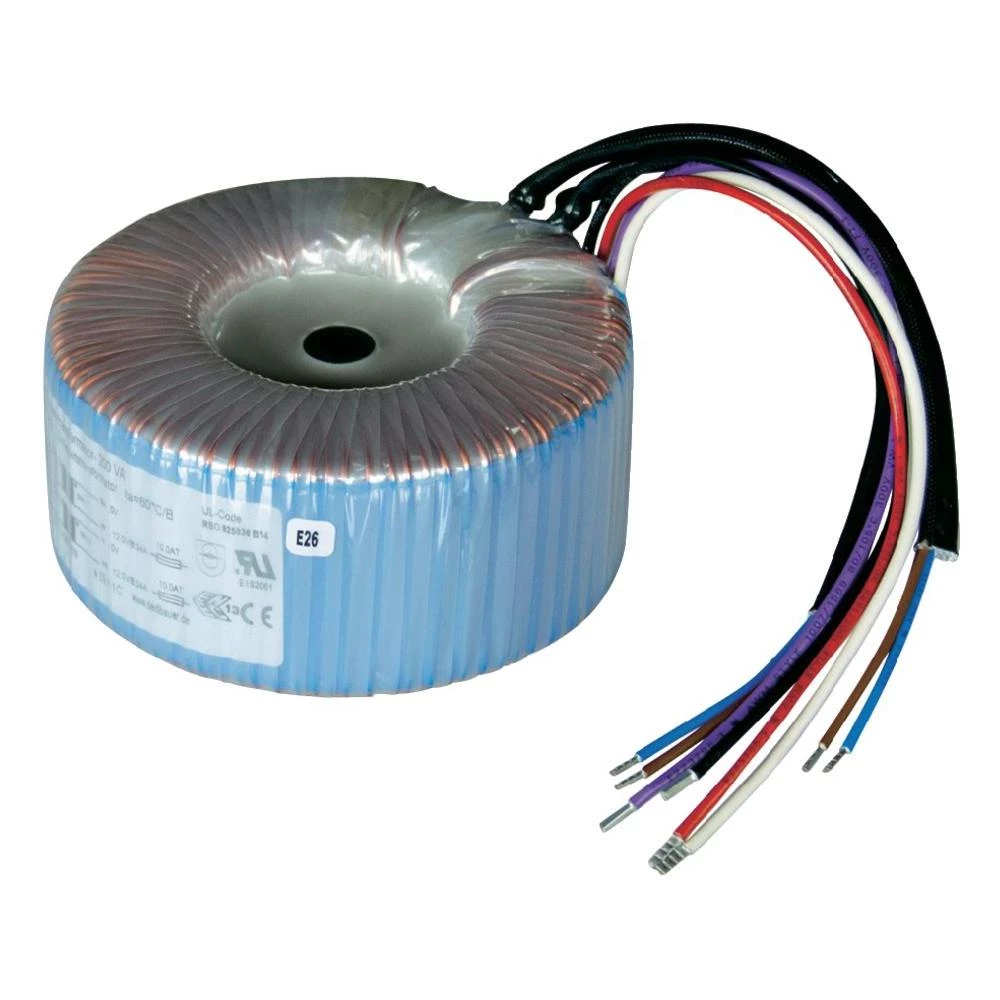 Galvansko odvajanje između primarnog i sekundarnog navoja. Jako malo magnetsko rasipno polje. Transformator s prstenastom jezgrom impregniran na montažnoj ploči s središnjim