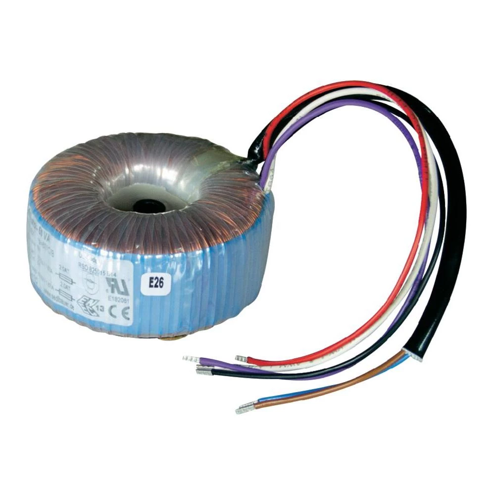 Galvansko odvajanje između primarnog i sekundarnog navoja. Jako malo magnetsko rasipno polje. Transformator s prstenastom jezgrom impregniran na montažnoj ploči s središnjim