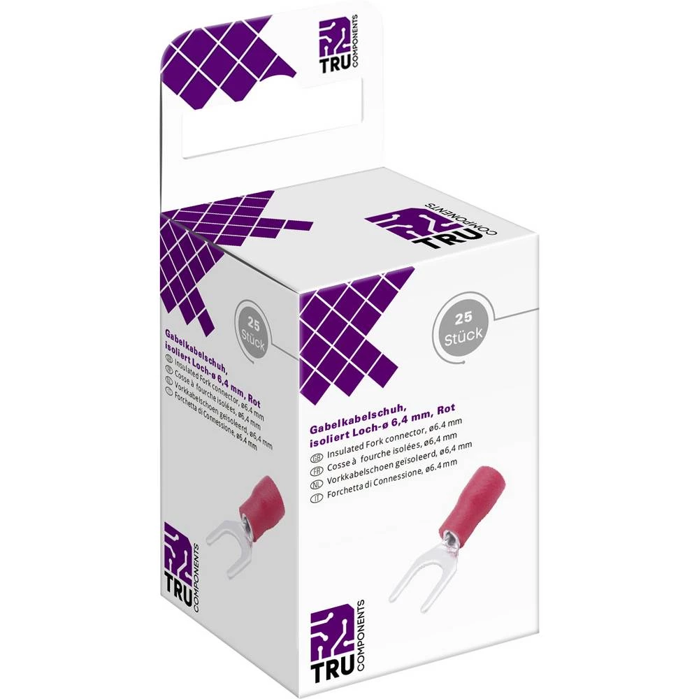 TRU COMPONENTS T2010C302 viljuškasta kabelska stopica 0.5 mm² 1.5 mm² Otvor Ø=6.4 mm izolirani dio crvena 25 St.
