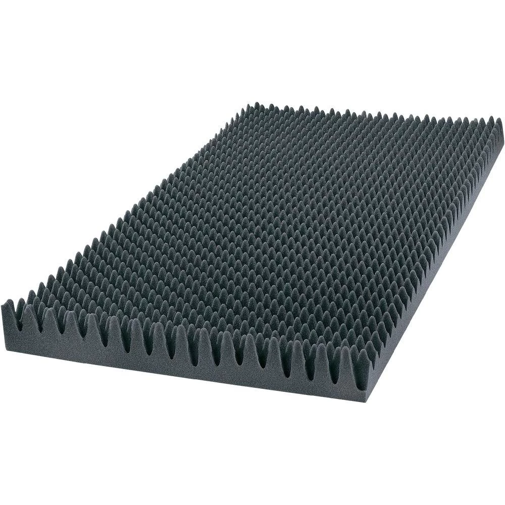 Samogasiva siva akustična pjena. Prikladno za izolaciju studija i zvučničkih kutija. Poliuretanski pjenasti materijal. Esterska pjena prostorne težine 31 kg/m³.