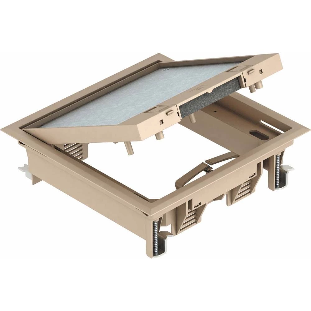 Umetač za 4 instalacijska uređaja u čašama od 2 GB2 uređaja za uporabu u sustavima kanala i povišenim podovima. Univerzalni ugradbeni kut podesiv na dvostruke debljine poda do 65 mm.