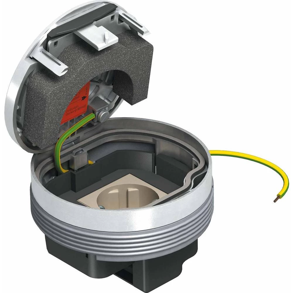 Okrugla instalacijska jedinica s podnim potpornim okvirom za izravnu ugradnju u razvodnu kutiju UDL2-120. U kombinaciji s poklopcem za montažu DUG.RM2, montažna jedinica se također može ugraditi u UZD190 ili UZD250-2. Instalacijska jedinica s 1-smjernom utičnicom u smjeru od 33 °. Na bočnoj strani utičnice mogu se smjestiti do 2 priključka za podatkovnu tehnologiju. Kada je zatvorena, instalacijska jedinica se može očistiti mokrom