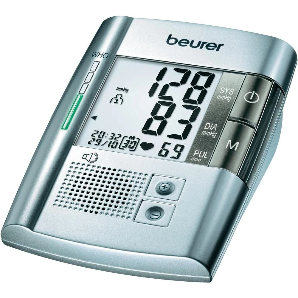 Uređaj za mjerenje krvnog tlaka za nadlakticu BM 19 ulijeva sigurnost velikim zaslonom, govornom opcijom i ljestvicom u boji. Možete brzo i jednostavno izmjeriti krvni tlak, sačuvati