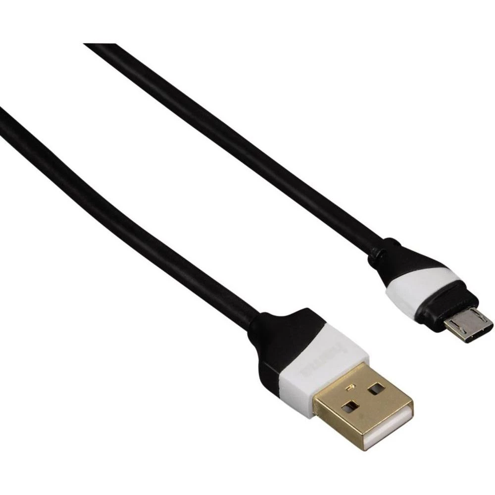 - USB 2.0 priključni kabel Hama [1x USB 2.0 utikač A - 1x USB 2.0 utikač mikro B] 1.50 m crna/bijela pozlaćeni utični kontakti