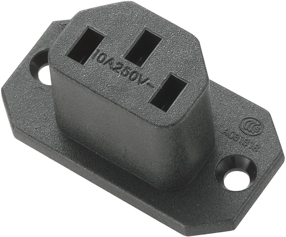 Utični konektor za hladne uređaje C13 utičnica, vertikalna ugradnja, ukupan broj polova: 2 + PE 10 A crne boje, 1 kom.