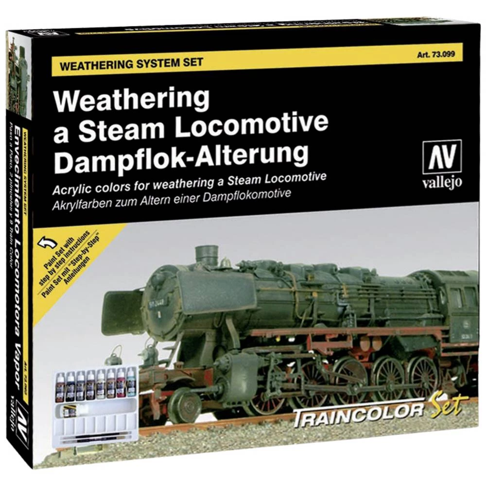 Set boja sa 9 boja, kistom, paletom boja i uputama. Kutija sadrži 9 boja TRAINCOLOR, 2 kista za farbanje modela željeznice, upute korak po korak i integriranu paletu za miješanje. Vallejo TRAINCOLOR su netoksične akrilne boje na bazi vode posebno razvijene za bojanje modela željezničkih vozila.