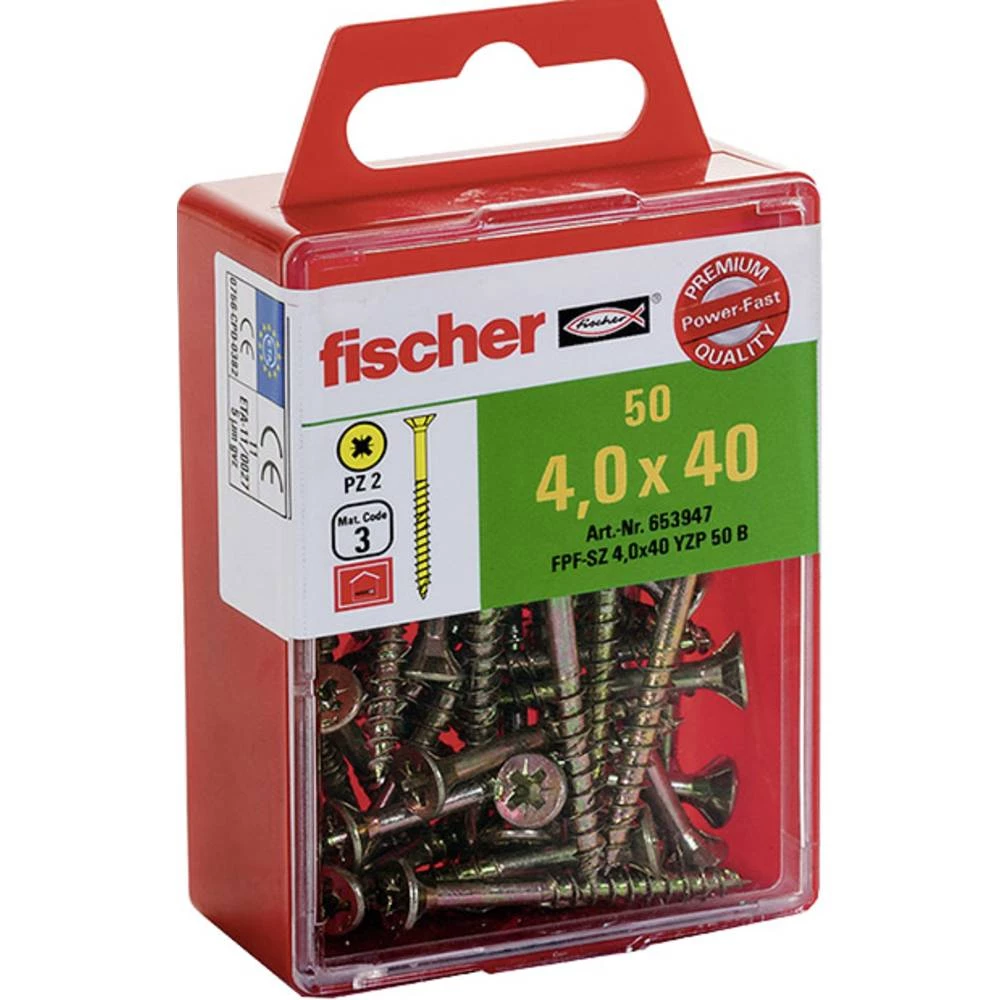 Vijci s upuštenom glavom 4 mm 40 mm Križni Pozidriv Galvansko pocinčani 50 ST Fischer 653947