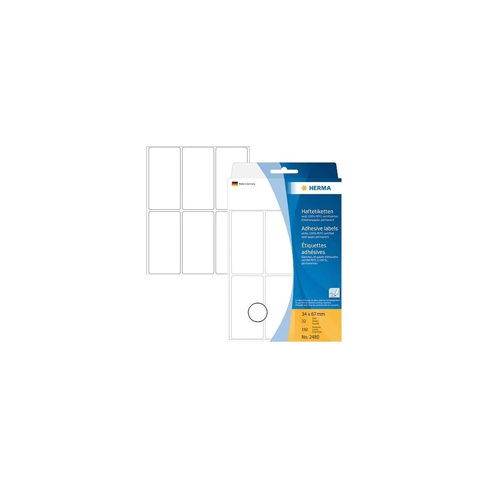 Višenamjenske naljepnice 2480 Herma (34 mm x 67 mm), trajno prianjajuće, bijela, 192 kom.