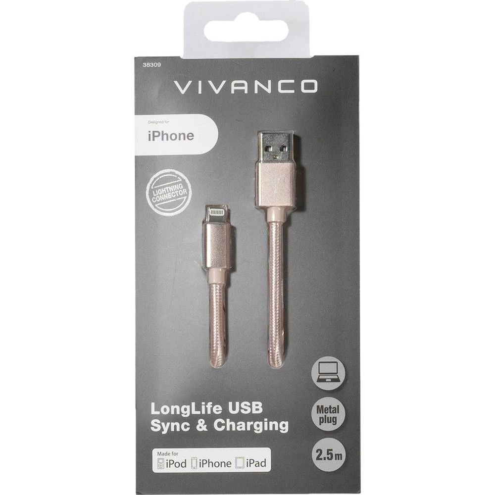 Vivanco USB 2.0 Priključni kabel [1x Muški konektor USB - 1x Muški konektor Apple Dock Lightning] 2.5 m Ruža Oplaštenje od tekst