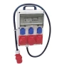 Mala razdjelna ploča pogodna za gradilišta s ručkom za nošenje i kućištem otpornim na udarce, uključujući prekidač 16 A, C, 1-polni i 3-polni.