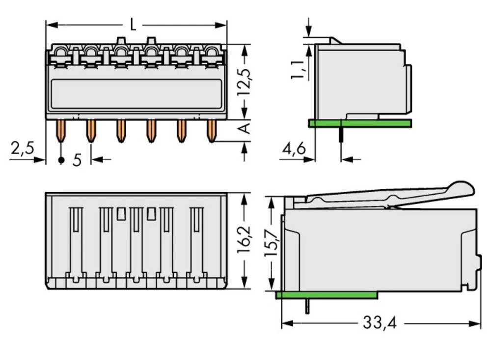- WAGO kučište utičnice-pločica 2092 broj polova ukupno 2, razmaci: 5 mm 2092-1322 200 komada