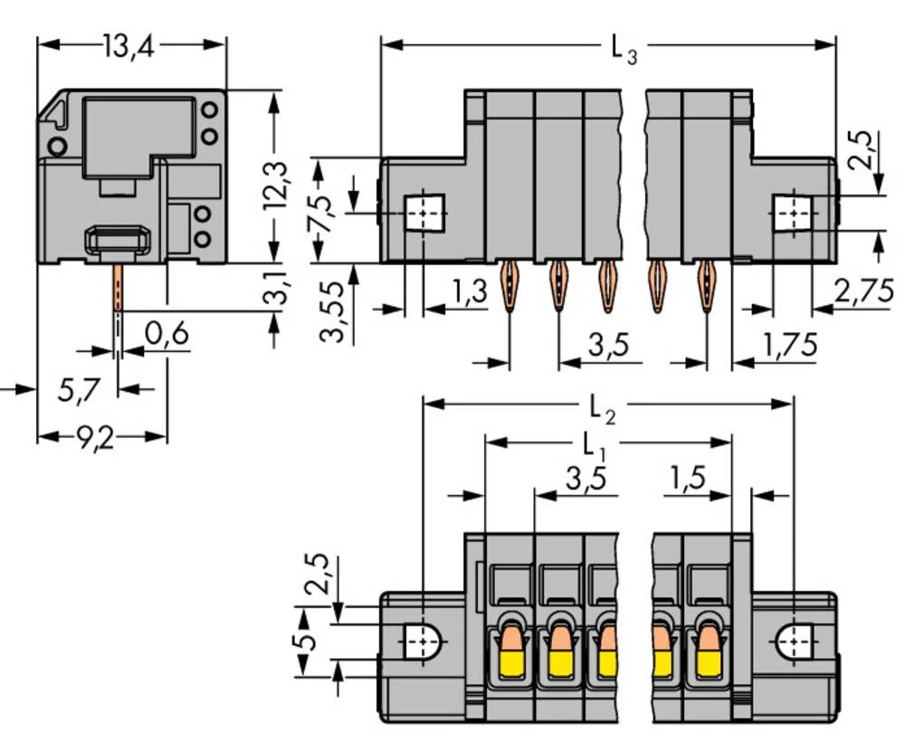 WAGO Opružni blok s stezaljkama 1.50 mm broj polova 8 sive boje 100 komada