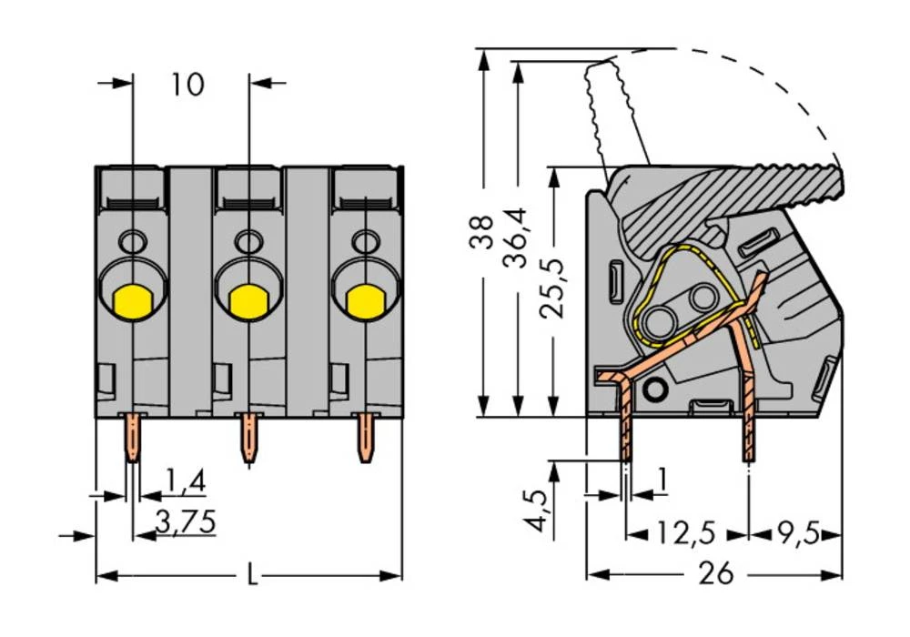 - WAGO Opružni blok s stezaljkama 6.00 mm broj polova 2 crne boje 70 komada