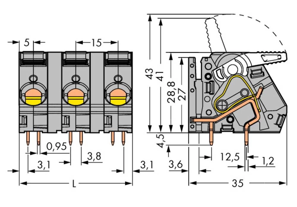 - WAGO Opružni blok s stezaljkama 6.00 mm broj polova 2 sive boje 40 komada