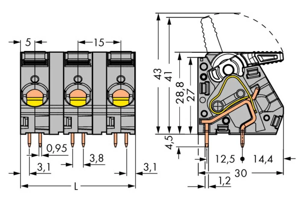 Schräg zur Leiterplatte