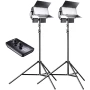 Ovaj set je unaprijed konfigurirani, potpuno opremljeni i savršeno koordinirani set, a sastoji se od dva snažna svjetla za dnevno svjetlo, dva prikladna stativa i daljinskog upravljača za paralelno upravljanje obje svjetiljke