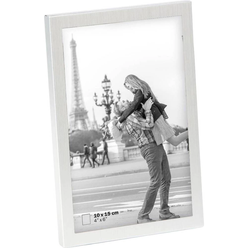 -Matt, profil od brušenog aluminija -bar: profil bloka -staklo: oprano prozirno staklo -zadnji zid: baršunasti stražnji zid sa postoljem -za 1 fotografiju u formatu 10 x 15 cm -Boja: srebrna (mat)