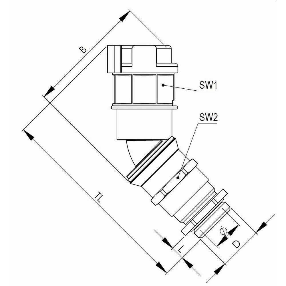 Wiska 10107990 EMBF45CG-29-32-BG vijčani spoj siva M32 x 1.5 45° 25 St.